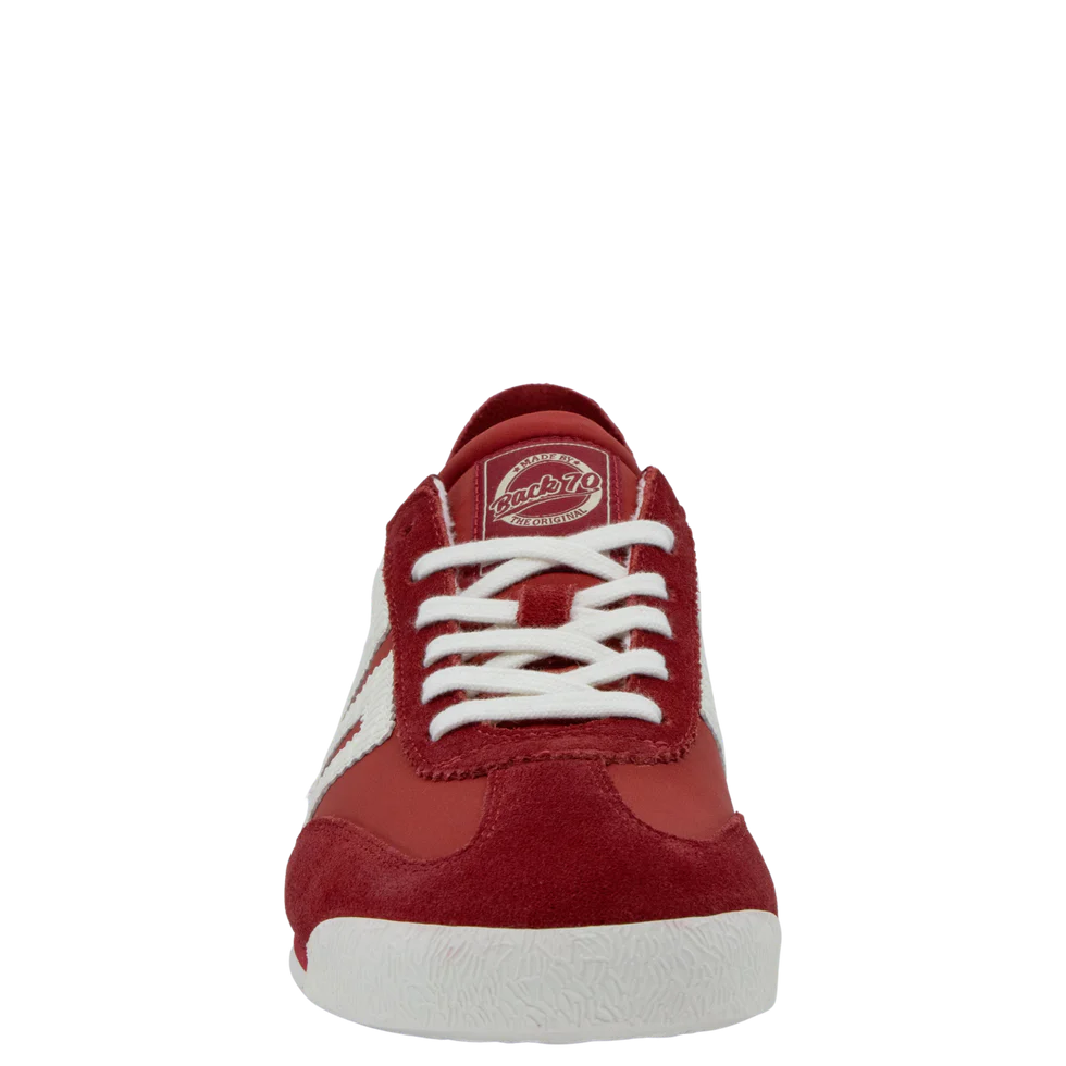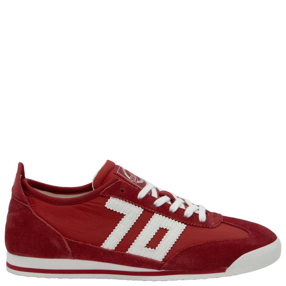 Create your casual aesthetic in Leon - a retro sneaker that pays homage to nostalgia in an interactive and fluid art form. Heavy on retro charm, Leon is easy to adapt into a universal range of design combinations from casual sportswear to sophisticated heritage-inspired styles. Hand crafted in small batches with luxurious quality suedes, classic woven cotton laces as well as a contrasting fashion cord for personalization, and Back 70's iconic emblem and signature logo patch.