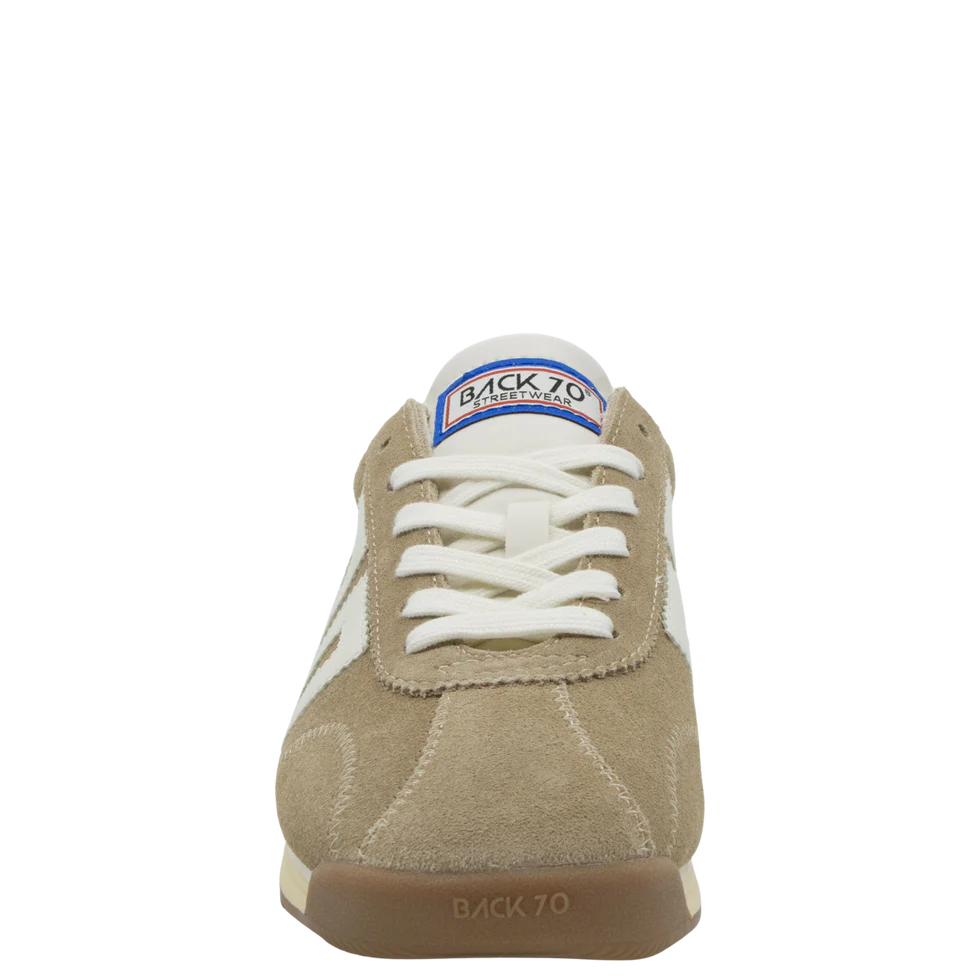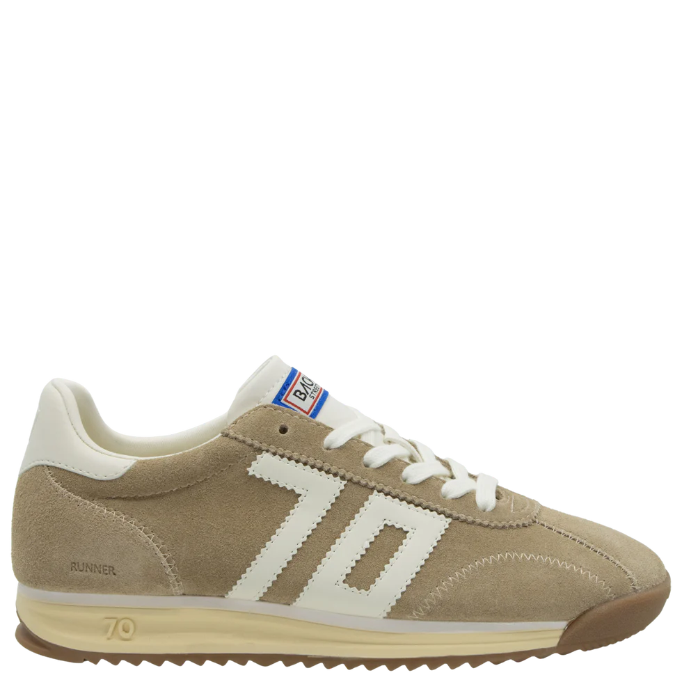 Lightness engineered for movement, Runner is a well balanced sneaker that blends form and function. Fluid design and an uplifting energy are shaped with cocooning, modular structures and abstract shapes found embedded within a calming, monochrome palette. Hand crafted in exceptional quality materials, this style elevates organic casual wear and utility basics, unearthing an authentic softness that echoes complexity and dimension. Featuring a lightly elevated sole, Back 70¿s heritage label and signature emblem.