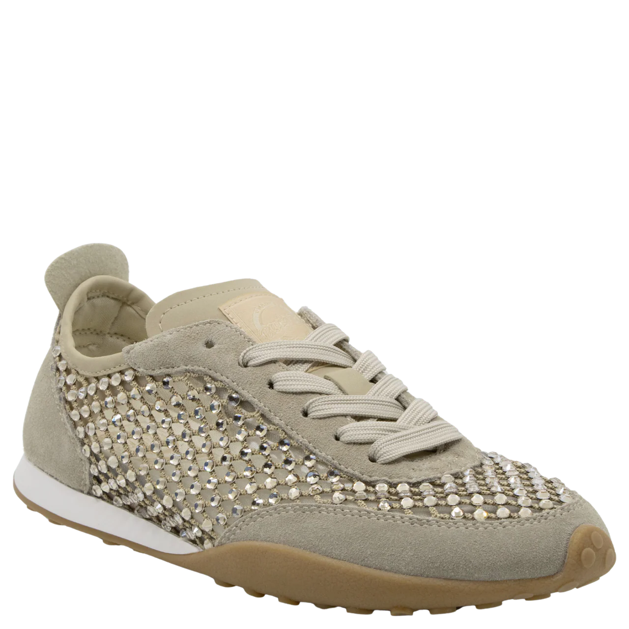 Designed in this season's most coveted silhouette, Paris G26 is Back 70¿s limited edition rhinestone-mesh sneakerina. A provocative, shimmering translucent layer creates a sense of vintage glamour, balanced by a distinctly modern sporty edge. Designed with the fluid lines of a runner and the refined attitude of a ballet flat, this hybrid shape defines a new era of luxury sport fashion.